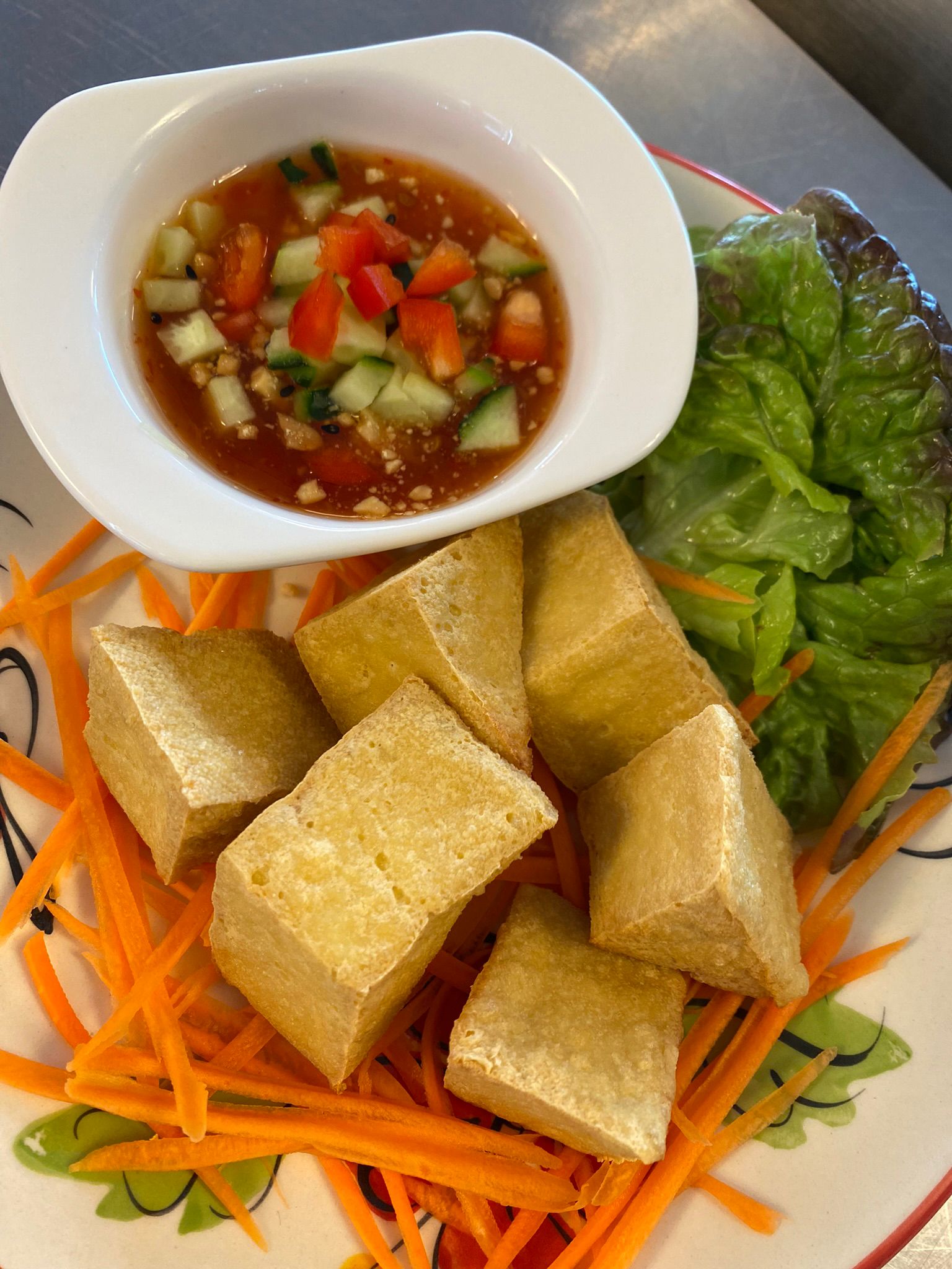 5 Crevetten frittiert, serviert mit Sweet Chili Sauce